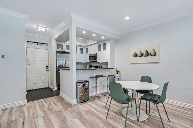 Property Id: 1577888 One bedroom FULLY FURNISHED condo in Mission Valley! Less than 5 miles to the following major hospitals! - Sharp Memorial Hospital - Scripps Mercy Hospital - Randy’s Children’s Hospital - Kaiser Permanente Zion Medical Center - Sharp Mary Birch Hospital Newly renovated with fine furnitures and a private patio! The condominium also has a community pool, jacuzzi and a gym. The place is equipped with all Nest Product (doorbell, doorlock, thermostat, Google home hub) and 2 Samsung smart streaming TV in living room and bedroom. Most major lights in the house are dimmable. New high-end Samsung appliances- stove, refrigerator and dish washer. In-unit washer and dryer! A full floor sliding door mirror with spacious closet plush a half walking closet with more space for clothes!