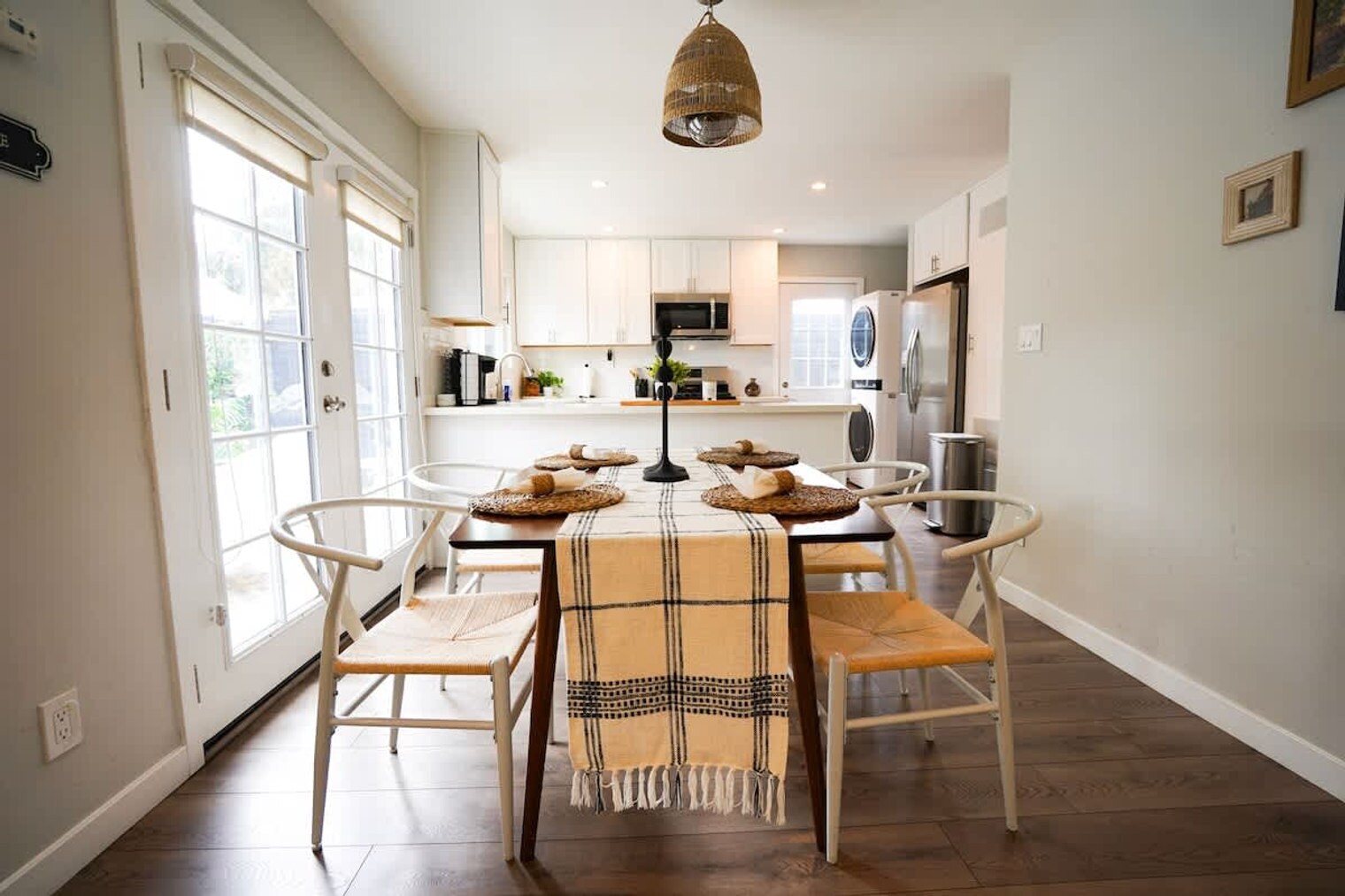 Welcome to this charming duplex unit, featuring a private, fenced-in flower garden patio with a fire pit. This inviting home offers a fully stocked and equipped kitchen, high-speed internet at 450 MBPS, and is conveniently located just 12 minutes from the beach and 15 minutes from SeaWorld. Although part of a duplex (Unit A), you will not share any space with the other unit. Each room in this home is individually climate controlled with its own ductless air conditioner and heater, ensuring comfort throughout your stay. The primary bedroom features a king-sized bed, while the other two bedrooms each have a queen-sized bed, all equipped with plush memory foam mattresses and 750 thread count sheets. The kitchen is well-equipped with basic pots, pans, and utensils, along with appliances such as a Ninja blender, toaster, Keurig, and drip coffee machine. The living room boasts a smart TV with access to major streaming channels including Netflix, Disney+, HBO Max, and Hulu, though standard cable is not available. For those bringing pets, there is an additional fee of $75. Please note that street parking is available, as the driveway is reserved for the back unit. Situated in a quiet neighborhood just minutes from the beach, this home offers a peaceful retreat while still being close to popular attractions. It's recommended to use Uber for transportation to most destinations, as parking at tourist spots can be challenging. Self check-in is available upon arrival. Quiet hours are enforced between 9:30 PM and 7:00 AM, with no music allowed outdoors during these times. Parties are strictly prohibited, and violations will result in eviction without a refund. The property can accommodate up to 6 guests, and any additional visitors must be agreed upon with the host beforehand. Early check-ins are rarely accommodated, as the cleaning team requires time to prepare the home after the previous guest's departure at 11 AM. The home is equipped with high-speed internet at 450 MBPS, making it suitable for remote work. Registration Number: STR-00633L [SI]