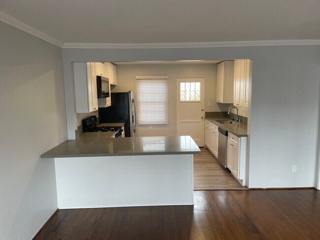 Newly renovated unit in triplex! Entry opens up to the kitchen with bar area and seating. Completely new kitchen outfitted with stove, refrigerator, dishwasher & GD. Hardwood floors in living room and bedrooms. The back door from the kitchen opens into a private yard area. There is a one car garage off of an alley. Shared coin -op laundry onsite. Please complete application if you are interested!