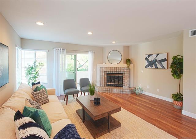 Newly remodeled rare ground floor corner location w Western exposure, great breezes & sunlight throughout the day. Stunning Calcutta Gold quartz counters, new stainless appliances, deep SS sink w commercial style faucet, new flooring, paint, baseboards, window treatments, rear sliding door, mirror closet doors and toilets/fixtures. Large cozy fireplace in LR for those nights where temp drops into the 50's. Large patio ideal for entertaining and BBQ's!!! This is the preferred split suite floorplan w interior laundry & two dedicated parking spaces. Complex has perfect location with easy access to I-5 freeway & access to all, pool, spa, exercise & rec room, tennis, volleyball, walking trails....... Deposit is equal to one month rent. 3x the amount of rent gross income required. Renters insurance required. 6-month or 1-year lease only. No Smoking Property. Small pet may be OK, negotiable. The unit is rented as unfurnished, the furniture in the photos was removed.