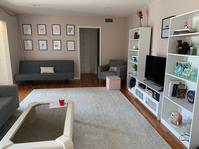 Short walk to SDSU. 4 Large Bedrooms w/USB plugs. Large Closets. 3 Full Bathrooms. Hardwood Floors. Dual Pane Windows. LED Lighting in most rooms. Central Heat/AC. All kitchen appliances. Large backyard with fruit trees. Parking for 4 Cars. 2 Car Garage. Gardener provided. Please do not disturb tenants.