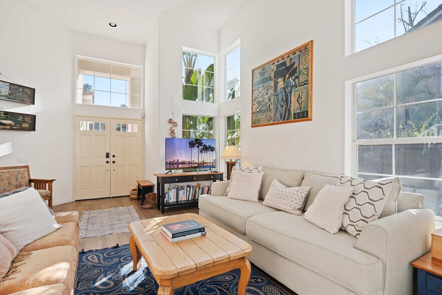 Escape to your ideal Carmel Valley getaway with this luxurious 2,475 sq ft, 5-bedroom, 3-bathroom home located in the guard-gated Palacio Del Mar community. This modern residence offers an open layout and a chef's kitchen, complemented by stylish living spaces and a sleek kitchen. Enjoy the private backyard oasis with a fire pit, and take advantage of resort-style amenities like a pool, tennis courts, and golf course, all within walking distance. The home also features central air conditioning, a dedicated laundry room, and space for three cars in the driveway with additional clubhouse parking available. This home is designed for comfort and convenience, featuring a serene primary suite upstairs and a cozy bonus room with a fireplace. The property is equipped with Wi-Fi and TVs, and includes a dedicated working station for those who need to stay connected. The stylish living spaces and sleek kitchen make it perfect for a comfortable San Diego vacation. The property allows one small dog with a $125 pet fee. There is space for three cars in the driveway and additional clubhouse parking available. Located in Carmel Valley, this home offers quick access to Del Mar's beautiful beaches and a vibrant local scene with upscale dining and attractions in Del Mar, Encinitas, and Solana Beach. Golf enthusiasts will appreciate the proximity to Torrey Pines Golf Course, while nature lovers can explore Torrey Pines State Natural Reserve. Major freeways are nearby, providing easy access to all of San Diego's attractions, including Del Mar Beaches, Del Mar Racetrack and Fairgrounds, Torrey Pines State Natural Reserve, Torrey Pines Golf Course, One Paseo, La Jolla Cove and Village, Birch Aquarium, Legoland California, and the San Diego Zoo. This home is located in an HOA gated community, so please respect the rules and regulations of the neighborhood. No smoking is allowed inside the unit, with a $600 minimum additional odor removal fee for violations. Backyard hours are from 8 AM to 10 PM to be courteous to the neighbors and abide by the San Diego City Noise Ordinance. Guests must clean the lint trap before using the dryer and remove makeup before using towels. Only toilet paper should be flushed down the toilet. If you cook, you must reasonably clean the kitchen before you leave, or a $35 service fee will apply. Three additional daytime guests are allowed to visit, but they must leave by 10 PM. A $100 penalty per additional person per night applies if there are more than three guests or if they stay past 10 PM. Includes a dedicated working station, Wi-Fi, and TVs. A laptop computer is not included. Registration Number: STR-10696L [SI]