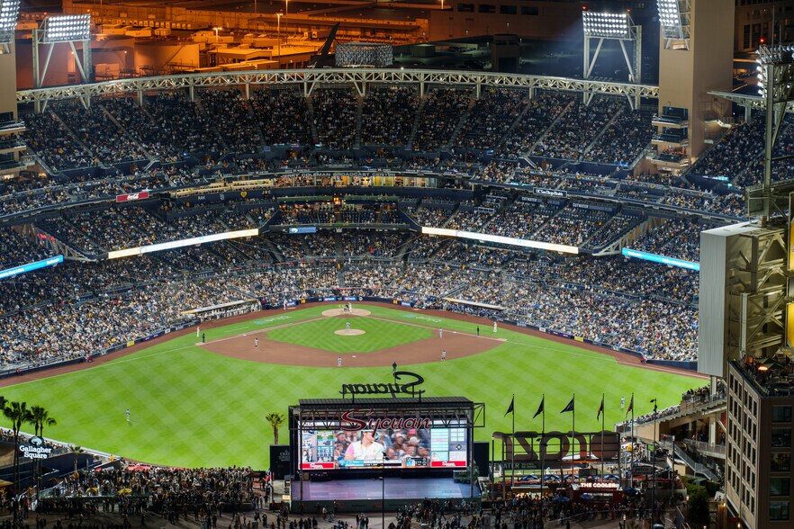 From this elevated vantage point, enjoy unparalleled panoramic views of the downtown skyline, San Diego Bay, the graceful arc of the Coronado Bridge, and the iconic silhouette of Point Loma. At the center of it all is the vibrant energy of Petco Park, home of the San Diego Padres—offering a front-row perspective to games, concerts, and the dynamic atmosphere of East Village.