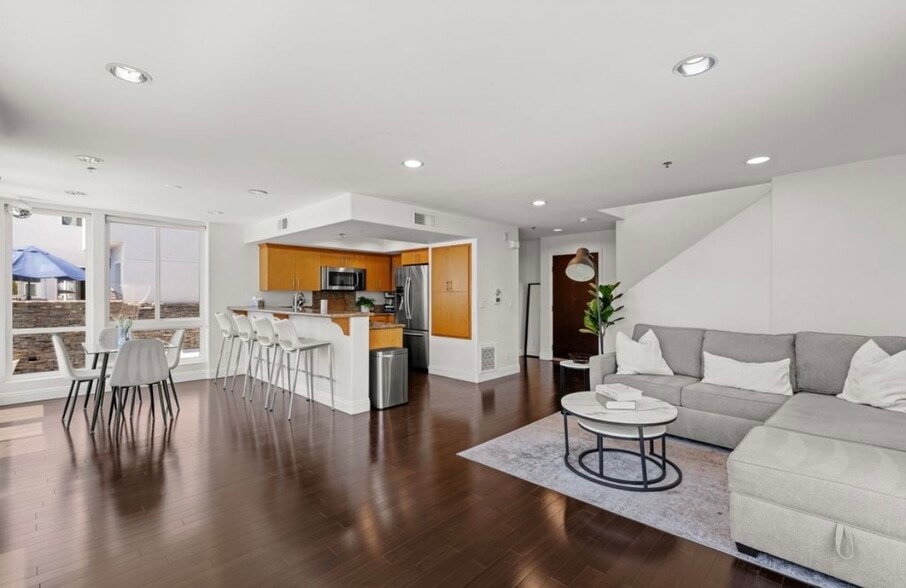 Live the ultimate coastal beach lifestyle just TWO blocks from the beach in this stunning, contemporary corner-unit condo flooded with natural light from floor-to-ceiling windows! With no unit above or below you, enjoy the ultimate privacy and serenity of a truly peaceful retreat. The south-facing primary suite boasts beautiful views, a spacious walk-in closet with custom organization, and a luxurious en-suite bathroom with dual sinks. The secondary bedroom also features its own en-suite bath, making it perfect for guests. Step outside to a large private balcony right off the main living space, ideal for relaxing or entertaining in the ocean breeze. Additional perks include two assigned underground parking spaces (#18 & #19) with EV wiring, a generous and easily accessible yet secure storage unit, and private building access with an elevator and dedicated bike storage. A newer HVAC system as of 2021 ensures comfort year-round, and a full-size washer, dryer, and refrigerator are all included. Located near vibrant Garnet and Grand Avenue, you're surrounded by top-tier shopping, Tuesday's PB Farmer's Market, dining, and nightlife, with Mission Bay just minutes away this is coastal living at its finest! Don't miss your chance to come see it today! Owner pays for water / sewer / trash, tenant pays for internet / electric / gas.