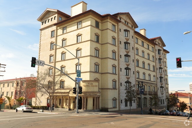 LIVING AT VILLA HARVEY MANDEL IN SAN DIEGO, YOU'VE DISCOVERED YOUR NEW HOME. Comfortable units that include: Bed and Chest of drawers. Kitchen Amenities: Granite Counter tops, Full Size Stove, Microwave, Refrigerator. Self Service Laundry on each floor, Air Conditioning and Heating in Unit, Elevator, Community Room. Located near downtown and major highways, you'll be near many attractions. Public Transportation is close by.