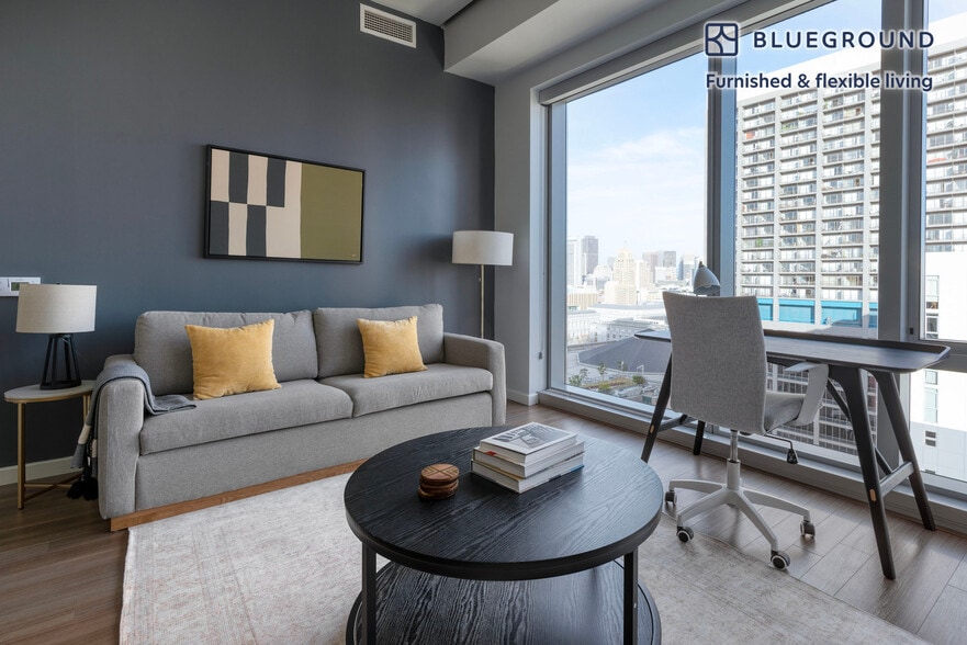 Discover the best of San Francisco, with this one bedroom apartment in Civic Center. It’ll be easy to simply show up and start living in this contemporary furnished apartment with its fully equipped kitchen, roomy living room, and our dedicated, on-the-ground support. (ID #SFO1629) The advertised rate of $5,240/month is the lowest available price, based on a 12 month(s) stay with a move-in date of June 1, 2026. Rates vary depending on the duration of stay, season, and other parameters. For exact pricing and additional pricing components, please visit our website and enter your desired move-in and move-out dates. The rate is applicable when billed upfront; it can be higher if billed in multiple payments. Brokers are welcome to reach out. Were you looking for an unfurnished lease? Try Blueground instead and upgrade from unfurnished to furnished living: - Furnished at rates comparable to unfurnished - No setup or furniture costs - save thousands - Move-in ready - save time, just bring your suitcase Designed with you in mind Gorgeous furniture, fully equipped kitchen, smart TV, and a premium wireless speaker are just a few of the amenities you’ll find inside this one bedroom apartment. Ideally located in San Francisco, you’ll find a lot to love outside as well. When you’re ready to relax, you’ll be happy to discover every Blueground bedroom comes with superior quality mattresses, fully stocked linens, and cozy towels. We handle everything so you can simply show up and start living. This apartment also offers in-apartment laundry. Sleeping arrangements Queen Bed, 63in/160cm Amenities Building amenities unique to this one bedroom apartment include an on-site: - Basketball Court - Doorman - Dryer - Elevator - Swimming pool - Washing machine - Lounge - Library - Parking - Pets allowed - Rooftop BBQ Arrival and ongoing support The entire apartment is yours to enjoy! Throughout your stay, you’ll have access to our Client Experience team through the Blueground App. You can schedule additional cleanings, submit maintenance requests, and view our neighborhood recommendations with just a few taps. We’ll share all details upon confirmation of your stay. Ideally Located This furnished apartment is in the Civic Center. The area contains many of the city’s largest government and cultural institutions. It is home to San Francisco’s City Hall and is surrounded by a number of classical buildings. The Supreme Court of California, the Asian Art Museum and the library are all located here. It has two large plazas (Civic Center Plaza and United Nations Plaza) and is the main site for any culturally significant activity. Located in the heart of the city, the SFO Airport is just 25 minutes by car or 45 minutes by BART. Other things to note Building amenities may have an extra cost. This Blueground apartment has flexible lease options, allowing you to book it for one month, a year, or more. Pets are welcome, though weight limits and breed restrictions apply and may incur fees. Parking is offered based on availability and is subject to a fee. We take great pride in ensuring every photo displayed is shot in our own units with our actual furnishings. That said, we regularly refresh our decor and furniture arrangement, which may differ from what’s pictured. [SI]