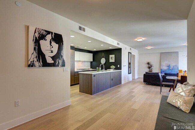 Welcome to your new home at the Blanc, a luxury boutique building designed by renowned architect Stanley Saitowitz. The building is convenient to a number of different neighborhoods with everything you need all within walking distance. A Rider's Paradise with a number of different Muni lines right out your front door. The building offers a shared Roof Deck with gas grill; bike storage room; secure building; elevator and parking. You will love living here! Available early September with the remainder of Sept rent free Featuring the following: ~ City Views! ~ Excellent natural lighting - eastern, western and southern exposure ~ 10th floor corner unit in an elevator building ~ Hardwood floors in main living area and carpets in bedrooms ~ Radiant floor heating and heated bathroom floors ~ Airconditioning ~ Open floor plan with living/dining combo ~ Gourmet kitchen with quartz counter tops and Sozo cabinets featuring stainless steel appliances, Bosch gas range and dishwasher ~ Master bedroom with ensuite bathroom and a ton of closet space ~ Second bedroom on opposite side of the unit ~ Main bathroom with shower/tub combo ~ Bosch washer/dryer in unit ~ Additional closet off entry ~ Water and garbage included ~ One car parking included - no large vehicles ~ Google Fiber available ~ Bike storage on site ~ Tenant responsible for move-in/out fees ~ Shared Roof Top with BBQ Pet friendly with additional security deposit (some restrictions may apply per HOA Rules & Regs) This is an unfurnished property