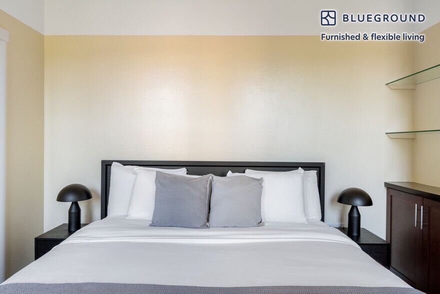 Discover the best of San Francisco, with this one bedroom apartment in Presidio of San Francisco. It’ll be easy to simply show up and start living in this contemporary furnished apartment with its fully equipped kitchen, spacious living room, and our dedicated, on-the-ground support. (ID #SFO1456) The advertised rate of $3,130/month is the lowest available price, based on a 12 month(s) stay with a move-in date of April 1, 2026. Rates vary depending on the duration of stay, season, and other parameters. For exact pricing and additional pricing components, please visit our website and enter your desired move-in and move-out dates. The rate is applicable when billed upfront; it can be higher if billed in multiple payments. Brokers are welcome to reach out. Were you looking for an unfurnished lease? Try Blueground instead and upgrade from unfurnished to furnished living: - Furnished at rates comparable to unfurnished - No setup or furniture costs - save thousands - Move-in ready - save time, just bring your suitcase Designed with you in mind As with any Blueground apartment, you’ll find a thoughtfully designed space complete with beautiful furniture and a fully equipped kitchen in this one bedroom property. And, thanks to our superior quality mattresses, luxury linens, and towels, you can relax knowing you’ll always feel comfortably at home. When you’re ready for some fun, you can take in the San Francisco vibes or bring the entertainment to you with the premium wireless speaker or smart TV. This apartment also offers in-apartment laundry. Sleeping arrangements King Bed, 70.8in/180cm Amenities Building amenities unique to this one bedroom apartment include an on-site: - Dryer - Elevator - Washing machine - Parking Arrival and ongoing support The entire apartment is yours to enjoy! Throughout your stay, you’ll have access to our Client Experience team through the Blueground App. You can schedule additional cleanings, submit maintenance requests, and view our neighborhood recommendations with just a few taps. We’ll share all details upon confirmation of your stay. Other things to note Building amenities may have an extra cost. This Blueground apartment has flexible lease options, allowing you to book it for one month, a year, or more. Parking is offered based on availability and is subject to a fee. We take great pride in ensuring every photo displayed is shot in our own units with our actual furnishings. That said, we regularly refresh our decor and furniture arrangement, which may differ from what’s pictured. Also note - This apartment is accessible for people with physical disabilities [SI]