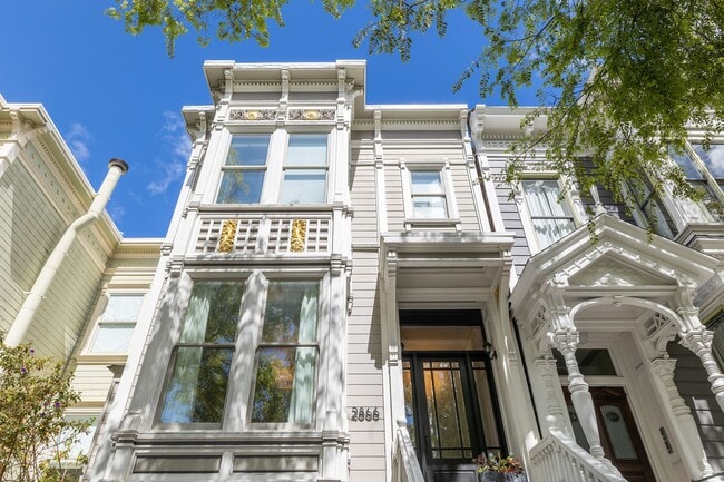Welcome to 2866 Pine Street, a beautifully updated Victorian located in the Lower Pacific Heights neighborhood of San Francisco. This stunning three-level home features five spacious bedrooms, four bathrooms, and an expansive backyard. The main level boasts 11’ ceilings, beautiful hardwood floors, and is flooded with natural light throughout. On this level, a formal living room with a cozy fireplace, triple-pane windows and custom built-ins immediately invite you into the space. Adjacent to the family room, you’ll find a custom Bulthaup chef's kitchen with a Wolf range, Sub Zero fridge, and stainless-steel counters, and an adjoining dining room with beautiful French doors that lead to a large terrace with Ipe decking –– perfect for al fresco dining and entertaining. An additional bedroom, bathroom, and laundry room can also be found on the main level. The upper level features a luxurious primary suite with a private balcony overlooking the large backyard, a gas fireplace, custom closets, and an ensuite bathroom boasting double vanity sinks, a large soaking tub, and a walk-in shower. There are two more bedrooms and a bathroom on this level. The lower level of the home features a well-equipped in-law unit with a separate entrance. Three-car parking with EV charging capabilities and ample storage. The outdoor spaces at 2866 Pine St are equally impressive. The beautiful home sits on a huge lot, and features a lush and peaceful garden with mature plantings, providing a perfect sanctuary in the heart of the city. Located just a short distance from the city's best shops, restaurants, and schools, 2866 Pine Street offers the ultimate San Francisco lifestyle.