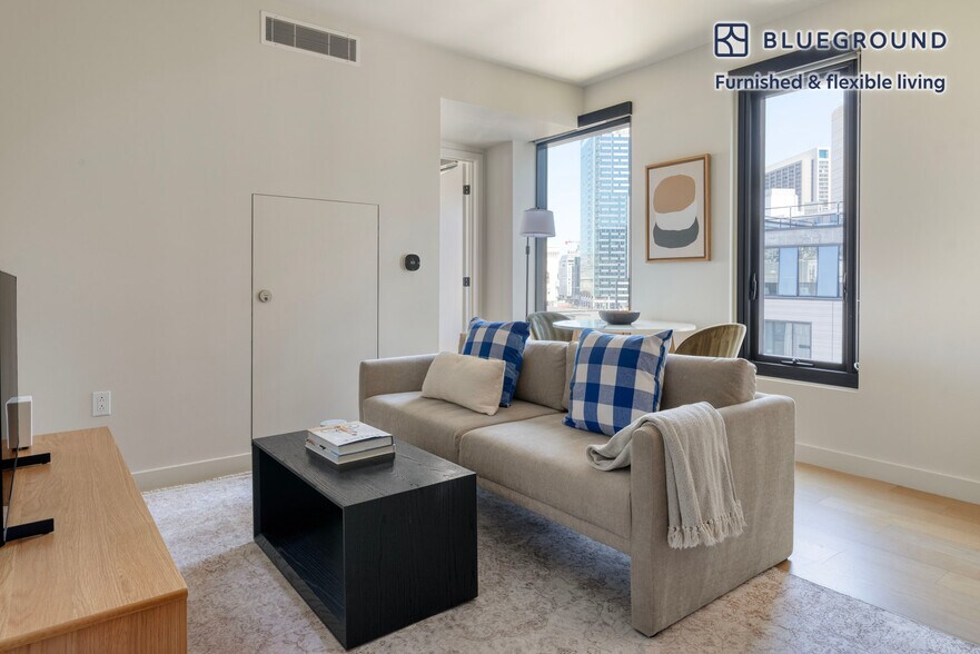 Feel at home wherever you choose to live with Blueground. You’ll love this cozy SoMa furnished one bedroom apartment with its modern decor, fully equipped kitchen, and lovely living room. Ideally located, you’re close to all the best that San Francisco has to offer! (ID #SFO1716) The advertised rate of $4,580/month is the lowest available price, based on a 12 month(s) stay with a move-in date of June 24, 2026. Rates vary depending on the duration of stay, season, and other parameters. For exact pricing and additional pricing components, please visit our website and enter your desired move-in and move-out dates. The rate is applicable when billed upfront; it can be higher if billed in multiple payments. Brokers are welcome to reach out. Were you looking for an unfurnished lease? Try Blueground instead and upgrade from unfurnished to furnished living: - Furnished at rates comparable to unfurnished - No setup or furniture costs - save thousands - Move-in ready - save time, just bring your suitcase Designed with you in mind Gorgeous furniture, fully equipped kitchen, smart TV, and a premium wireless speaker are just a few of the amenities you’ll find inside this one bedroom apartment. Ideally located in San Francisco, you’ll find a lot to love outside as well. When you’re ready to relax, you’ll be happy to discover every Blueground bedroom comes with superior quality mattresses, fully stocked linens, and cozy towels. We handle everything so you can simply show up and start living. This apartment also offers in-apartment laundry. Sleeping arrangements Queen Bed, 63in/160cm Amenities Building amenities unique to this one bedroom apartment include an on-site: - Doorman - Dryer - Elevator - Game room - Swimming pool - Washing machine - Lounge - Parking - Pets allowed Arrival and ongoing support The entire apartment is yours to enjoy! Throughout your stay, you’ll have access to our Client Experience team through the Blueground App. You can schedule additional cleanings, submit maintenance requests, and view our neighborhood recommendations with just a few taps. We’ll share all details upon confirmation of your stay. Ideally Located This furnished apartment is located in South of Market, known as SoMa. A trendy, urban district, famous for its excellent art and museum scene. Home to a diverse mix of entrepreneurs and young families, this neighborhood offers hip bars, fine dinings and delicious coffee. Don’t miss the plethora of museums, including a visit to the San Francisco Modern Museum of Art. Baseball lovers frequently visit SoMa, as it is also home to the San Francisco Giants. Other things to note Building amenities may have an extra cost. This Blueground apartment has flexible lease options, allowing you to book it for one month, a year, or more. Pets are welcome, though weight limits and breed restrictions apply and may incur fees. We take great pride in ensuring every photo displayed is shot in our own units with our actual furnishings. That said, we regularly refresh our decor and furniture arrangement, which may differ from what’s pictured. [SI]