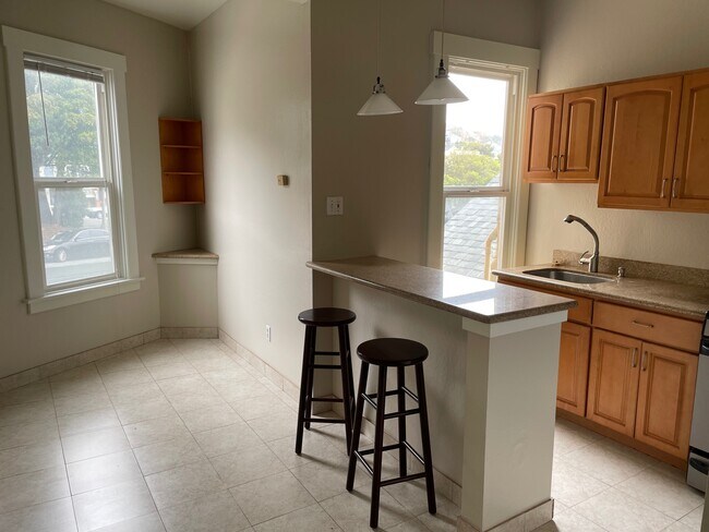 Flat iron building at Market and 18th Street. Available March 1 or before. Bright and sunny with view. Hardwood floors in living area. Tile floors in kitchen and bathroom. Kitchen has a gas self cleaning stove. Alcove off the kitchen that can be used as a small office. Walking distance to Castro. Close to Muni and Bart. Easy street parking. Call or text.