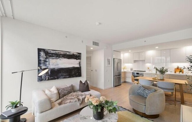 Discovery begins in this sunlit, west-facing corner residence in the heart of Hayes Valley. Floor-to-ceiling windows, a modern open-concept layout, and refined finishes create a bright, stylish atmosphere, while views of the landscaped courtyard offer a serene escape from the city. The contemporary kitchen is equipped with Bosch appliances, quartz countertops, and ample cabinetry. A generously sized bedroom, abundant closet space, wide-plank flooring, and in-unit laundry complete the home. All utilities are included in the rent for a truly effortless living experience. The building offers spacious floor plans and top-tier amenities, including an expansive rooftop deck with sweeping city views, a secure lobby, package room, bike storage, and a convenient ground-floor grocery market. Short-term and corporate leases are available for this inviting unit. Ideally located in central Hayes Valley, you’re just steps from boutiques, cafés, restaurants, fitness studios, and Trader Joe’s—placing every urban convenience at your doorstep. Showings may be scheduled upon application submission.