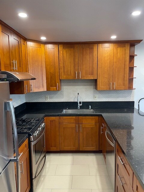Top Full Floor Flat with Ocean Views Spacious, light filled and recently refreshed 3 bedroom/2 bathroom in prime Richmond district location. Updated kitchen with granite counters, new gas stove and ample counter space and cabinet storage. Separate dining room and spacious adjoining living room. First bedroom is roomy and light filled with sliding closet for storage. Generous back bedroom overlooks the backyard and has walk in closet. Master bedroom is largest of the three with adjoining master bath including shower and tub and generous closet space. Shared bathroom also features shower and tub. Other features include: in unit washer and dryer, new LED lighting throughout, complete repaint of apartment, newly installed carpet throughout, one car garage parking with room for storage. The unit will also have shared access to large yard that is fully pavered. One year lease. Move in requires first month rent plus one month's deposit. All utilities - PG&E, water, garbage, cable is responsibility of tenant.