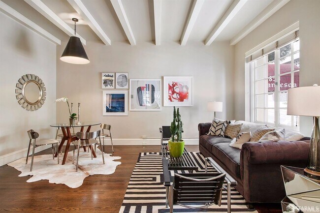Presenting the meticulously renovated 2-bedroom, 2-bathroom residence at The Francesca in prestigious Nob Hill. Discover crisp, light-filled rooms adorned with beamed ceilings and gleaming hardwood floors. The chef's kitchen is a culinary haven, boasting espresso wood cabinetry, a Viking gas range, stainless steel appliances, granite countertops, and luxurious limestone flooring. The living room features coffered ceilings that perfectly complement the grand windows, bathing the space in natural light. Retreat to the serene ensuite bathroom with polished nickel fixtures, radiant heat flooring, and elegant limestone accents. This residence offers unparalleled convenience in the heart of prime Nob Hill. Just steps away, you'll find San Francisco's iconic cable cars and renowned landmarks such as the Fairmont Hotel and upscale lounges. This lovely condominium is offered Unfurnished. Lease Parking Available. Prepare to be captivated - and experience luxury living at its finest at The Francesca. Arrange to take a closer look today!