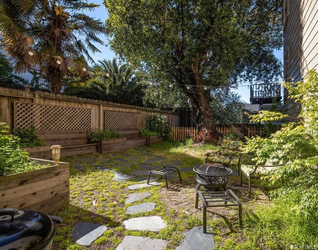Ideal Co-living in spacious Seven-room Edwardian flat, off beautiful and lively Alamo Square. New designer lighting throughout complement the well-maintained original charm and detail. Natural Doug Fir floors, 10-foot ceilings, great natural sunlight in living/dining/kitchen and very private and quiet in four bedrooms. Super nice and friendly neighbors on all sides. Wonderful 60' x 25' level landscaped garden with built-in benches and mature European Bay tree, roses, lilacs, hydrangeas, Japanese maples, and opportunity for gardening, fire pit, and barbecues. Chef's Kitchen with Caesarstone counters, soft-close cabinetry, All Bosch Dishwasher, Oven, Gas Cooktop, and stainless sxs fridge. W/D in unit. Central heat. Water and garbage are included. Perfect for roommates, couple, family, single, all are welcome.