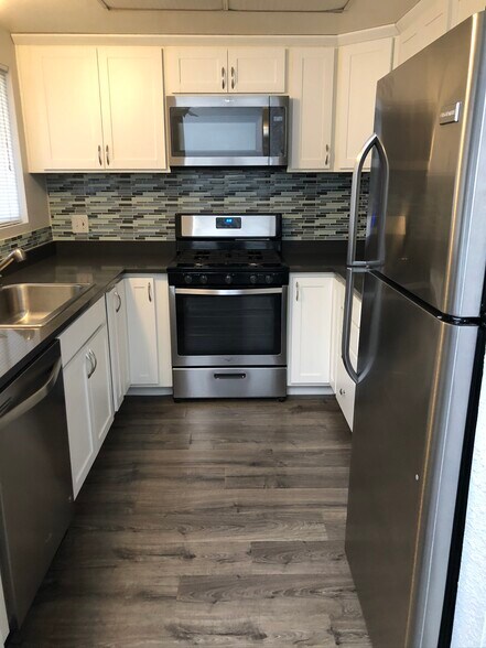 Cedar Creek apartments -within walking distance to Cal Poly. Remodeled 2-bedroom, 2-bathroom unit. Hardwood floors, new kitchen with stainless steel appliances, custom cabinets, designer back splash. Washer and dryer in the unit. The unit is light and bright with vaulted ceilings, a skylight, and a new ceiling fan. Two parking spaces are included with the unit. One is covered. Additional parking spaces can be purchased from Farrell Smyth. Some furniture is included: a dining table with 6 chairs, a credenza, and one twin bed. Also included are blackout curtains in the bedrooms. Bedrooms are large and easily accommodate 2 students in each room. 1-year lease commencing on July 16, 2026 through July 15, 2027.
