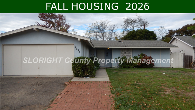 FALL HOUSING 2026 SEE FALL HOUSING FLYER: FALL HOUSING: Please note you MUST apply first to be considered for a showing. Tucked away in the Laguna Lake neighborhood, this lovely 3 Bed / 2 Bath home is situated on a large fenced lot. Inside, find a large family room centered around a brick fireplace with open flow into the kitchen and dining areas. Bedroom wing complete with two bathrooms, and a well-sized two-car garage wraps up the interior of this charming home. Public transportation near by! 12 month Lease. This is a NO PETS property. No smoking is allowed inside the home. The tenant is responsible for all utilities associated with the property. Gardener included. If selected as a tenant, a Move-in Fee of $49 per household is required. The fee covers a move-in inspection including digital records of property conditions for tenant protection. DO NOT DISTURB CURRENT TENANTS. A showing associate from our company must be present to show you around the home. We will not be doing open house showings for Fall Housing properties with tenants inside. If your group is chosen for a property, we will schedule a time where everyone in your group will have to view the property in person before a lease is written. Before submitting an application please carefully read the "Fall Housing Flyer" located at the top of the description and the "Rental Search" page. To apply, locate the advertisement of the property you are interested in under the “Rental Search” page and select “Apply Now” to begin. Newport Street, San Luis Obispo CA BRE Broker's License # 01876023