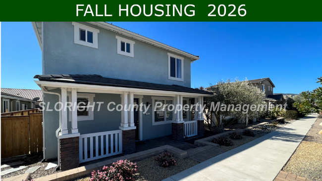 FALL HOUSING 2026 SEE FALL HOUSING FLYER: FALL HOUSING: Please note you MUST apply first for your group to be considered for a showing. 3 bedroom, 2.5 bathroom house located in Sierra Meadows. This lovely home features a spacious backyard perfect for outdoor entertaining, a modern kitchen with a convenient island, all essential appliances including a refrigerator, gas range, microwave, and dishwasher. The home also includes a washer/dryer for added convenience. Enjoy the beautiful California weather under the pergola in the backyard or park your vehicles in the attached 2 car garage. Located close to shopping and restaurants. 12 Month Lease. This is a NO PETS property. No smoking is allowed inside the home. The tenant is responsible for all utilities associated with the property. If selected as a tenant, a Move-in Fee of $49 per household is required. The fee covers a move-in inspection including digital records of property conditions for tenant protection. DO NOT DISTURB CURRENT TENANTS. A showing associate from our company must be present to show you around the home. We will not be doing open house showings for Fall Housing properties with tenants inside. If your group is chosen for a property, we will schedule a time where everyone in your group will have to view the property in person before a lease is written. Before submitting an application please carefully read the "Fall Housing Flyer" located at the top of the description and the "Rental Search" page. To apply, locate the advertisement of the property you are interested in under the “Rental Search” page and select “Apply Now” to begin. Junipero Way, San Luis Obispo CA BRE Broker's License # 01876023