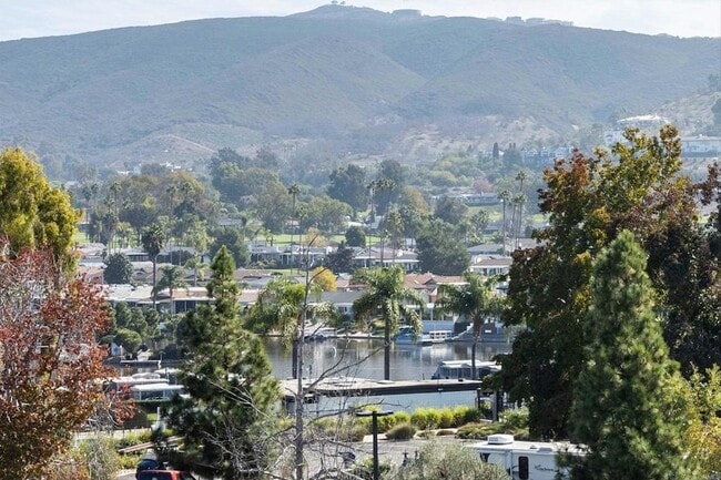 Chateau Lake San Marcos 55+ Active, Independent Living Resort community. This highly desirable 3rd floor upper unit with vaulted ceilings, upgraded, East facing: Lake and mountain views. Located in the D building which has less residents and ideal to walk to dining room and community room within steps. Elevator in building. This unit is an end unit with the largest floor plan of 2/2 and 1030 Sq. ft. living space with two private balconies with a storage closet. One shared interior wall, no one above you. Condo has been upgraded with quartz countertops, upgraded vanities and LED lighting. Tile and carpet which may be changed to luxury vinyl flooring. Newly painted. Each unit controls their own forced air and heating. The lease of $4500.00 is for one resident which includes: bimonthly cleaning and linen services. 30 meal credits per month. Transportation, on staff maintenance crew for a fee. 24 hour security. Gated. All utilities to include WIFI, internet, trash, sewer water and gas. You pay electric bill. Assigned carport space with additional storage. Chateau amenities include: private heated pool and spa with ADA compliance lift. Fenced. Library, fitness center, beauty salon plus more. Also includes membership to Lake and Lodge for two pools, tennis, pickleball, 50 clubs, lake and fishing access and water sports. Lake San Marcos has several restaurants within walking distance, golf for a fee. Non-smoking campus with dog park. Pets considered. If second resident on lease rent would be $5425.00 per month.