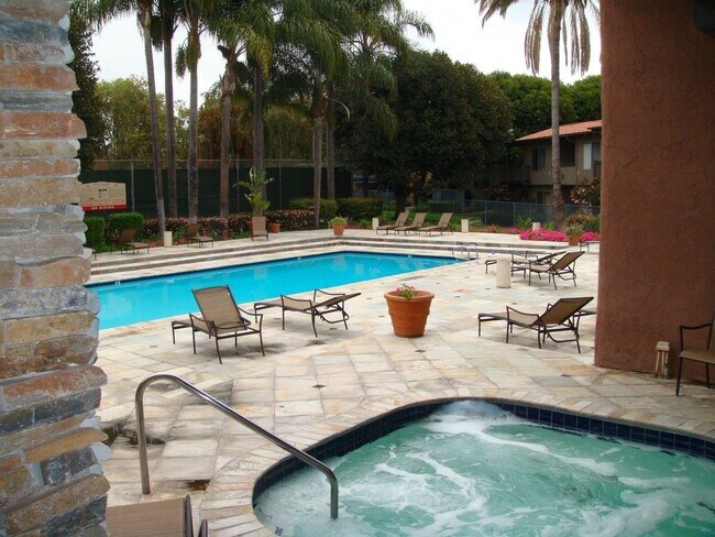 Centrally located near schools, shopping and freeways. Carport is directly behind the unit. The complex features two tennis courts, a resort style pool and jacuzzi deck, stainless steel and natural stone BBQ areas, volleyball court, Clubhouse and gym. bright and clean laundry facilities, and rich landscaping throughout.