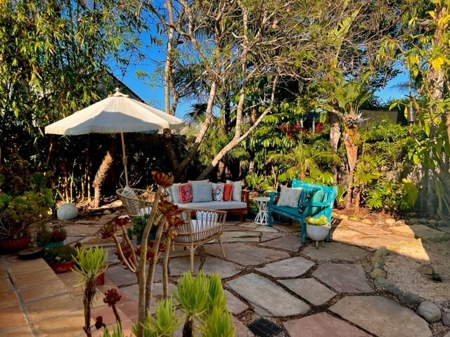 Charming Spanish Westside home- FURNISHED monthly rental. The house is charming and cleanly remodeled. A 1920’s hacienda style with hardwood floors, Jerusalem stone, Spanish tiles and refurbished. All the appliances and interiors are brand new. The house is on a quiet street and is very cozy with a lovely fireplace, fig tree and Italian courtyard patio with barbeque and large outside table, chaise and chairs for entertaining There is a full kitchen with granite counter tops, stove and dining table, washer and dryer and a full bathroom. The house and bedrooms are entirely furnished and include, bed, dressers, closets and desks. The house is complete with linens, towels and all kitchen tools.