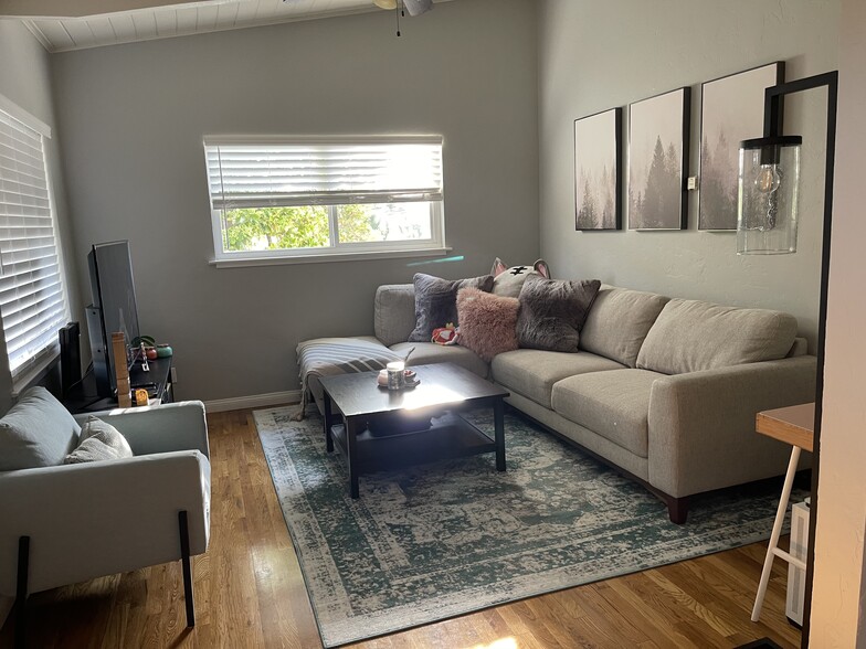 - Charming UPSTAIRS 1BR/1BA with vaulted ceilings in fourplex; (some pictures shown with furniture to show scale) - Beautiful UNFURNISHED, oak hardwood floors (not laminate!) and double-paned windows with plantation-shutter blinds throughout in great layout - Eat-in kitchen includes stone flooring, granite countertops, stainless-steel appliances including electric range/oven, garbage disposal, dishwasher, refrigerator, cherry cabinets - Walk-in closet - Ceiling fans in living room, bedroom - Laundry room on site - Bathroom with granite counter and tub/shower, stone floors and shower surround - Cable/internet wiring ready - One carport space with additional locker storage - Community patio area - Walk to El Pollo Loco, Starbucks, Jamba Juice, Paris Baguette, other restaurants and shops - Only 0.7 miles to Target and Sprouts (Santa Clara Town Centre) - Centrally located, close to San Tomas Expressway & El Camino - Utilities included: water, garbage, sewer - 1-year-lease required, security deposit (equivalent to one month or less if you have excellent credit), good credit, 2 recent pay stubs - To start application process: signed/completed application, 2 pay stubs, $35 application fee - Sorry, no smoking, no pets Address: 2540 Robinson Ave, Santa Clara PLEASE DRIVE BY FIRST and if you're interested in seeing the interior or for more information, email, text or call! Video tour available.