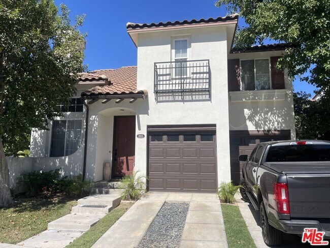 Corner lot Updated home in Northpark Valencia. The home features a secluded backyard for outdoor living and entertainment. Enjoy the outdoor spa while gazing at the stars as you unwind. The home features three bedrooms , two bathrooms, and a downstairs quarter restroom. The downstairs features hardwood flooring, and carpeting upstairs. The kitchen was recently updated with white quartz counters and designer backsplash. All appliances are newer stainless steel with dishwasher and automatic ice maker. There's also a built in office area adjacent to the bedroom. The living room has a gas log fireplace for cold winter nights to enjoy while watching movies. The master bathroom has an oversized tub and walk in closet. The home exhibits one of the largest grass areas and landscaping in the entire track.