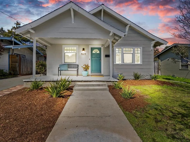 Newly carpeted living room has big double pane windows & adjacent office overlooking the sunny porch. Skylights & white cabinets brighten the kitchen & dining areas, divided by an open counter where guests can mingle as you prep their refreshments in your inviting kitchen. The primary bedroom has a spacious walk-in closet & wall-sized arched window; the second bedroom a skylight. The bath has a shower/tub and ample cabinets. A bonus detached studio adjoins a vintage workshop/laundry room. Studio has a separate entrance, bathroom & comfy space for relaxing, hobbies, or working out.