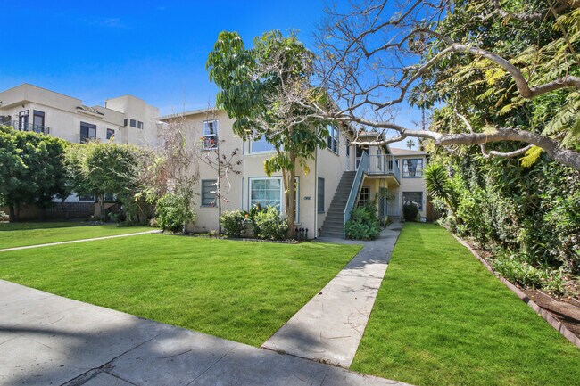 North of Wilshire Blvd in Santa Monica and only 5 blocks to the beach! Lovely courtyard style building with lots of grass and natural light - look at the photo!