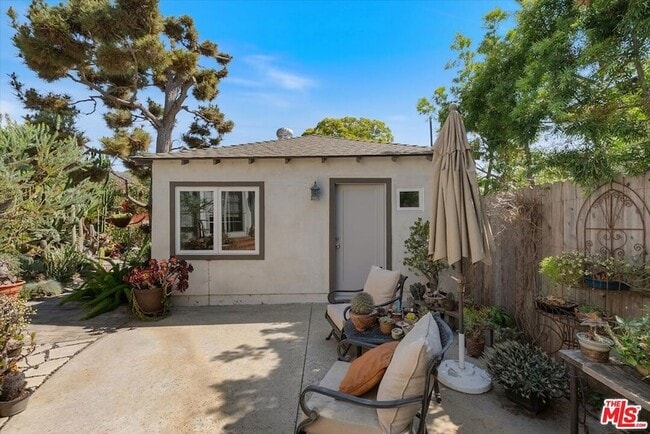 Rare beautiful fully furnished 1-bedroom, 1-bath Santa Monica ADU set within one of the most extraordinary private botanical gardens you'll find anywhere in West LA. This standalone California cottage offers the privacy and serenity of a secluded retreat while sitting just minutes from the beach, Main Street, and Montana Avenue's premier shops and dining. The open-concept living, dining, and kitchen area is bright and airy, anchored by wide-plank luxury vinyl flooring, recessed lighting, and oversized windows framing lush garden views on multiple sides. The living room is tastefully furnished with a gray tufted sofa, glass coffee table, wall-mounted flat screen TV, and a walnut media console. A dedicated workspace with desk and ergonomic chair makes this an ideal setup for remote professionals. The kitchen is fully equipped and beautifully appointed with floor-to-ceiling gray shaker cabinetry, quartz countertops, a marble-look backsplash, and a full suite of stainless steel appliances including a KitchenAid French door refrigerator, five-burner gas range, over-range microwave, and dishwasher. A round dining table with chairs sits adjacent to the kitchen for an easy everyday flow. The bedroom is comfortably sized with recessed lighting, LVP flooring, a mirrored sliding door closet, and a clerestory window for natural light and privacy. It opens directly to a private outdoor patio through a full-width sliding glass door a standout indoor-outdoor feature. The bath is spa-caliber, featuring floor-to-ceiling marble-look tile, a frameless glass-enclosed shower, white shaker vanity, quartz countertop, and brushed nickel fixtures throughout. The unit is equipped with a ductless mini-split HVAC system for year-round comfort, a smart home panel, and central HVAC. Fully furnished and move-in ready. The surrounding grounds are nothing short of remarkable! A mature, curated drought-tolerant botanical garden featuring rare cacti, towering aloes, succulents, paver pathways, and specimen trees cultivated over decades. Multiple outdoor seating areas on the private patio and throughout the garden create a sanctuary feel rarely found in any urban rental.