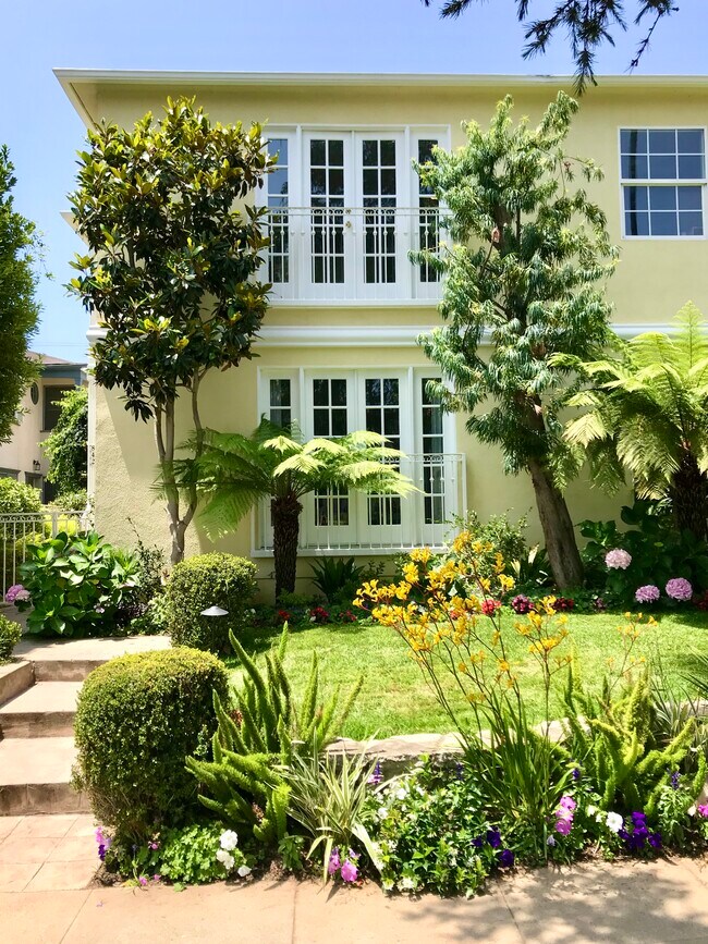 This charming furnished one-bedroom condo is on the 2nd/top floor, professionally decorated, is light and bright, with hardwood floors & French doors. It is surrounded by plenty of windows, sunshine & greenery. It is in an ideal location, just 1/2 a block off the trendy Montana Avenue shops and restaurants. Walking distance to the beach, parks, coffee, and Whole Foods. The building is nicely landscaped, and serene. Wonderful neighbors and parking are included. :) Looking for 12 month lease, but will consider other. Perfect for temporary relocation, professional travel, or to call 'home'. Please feel free to message with any questions