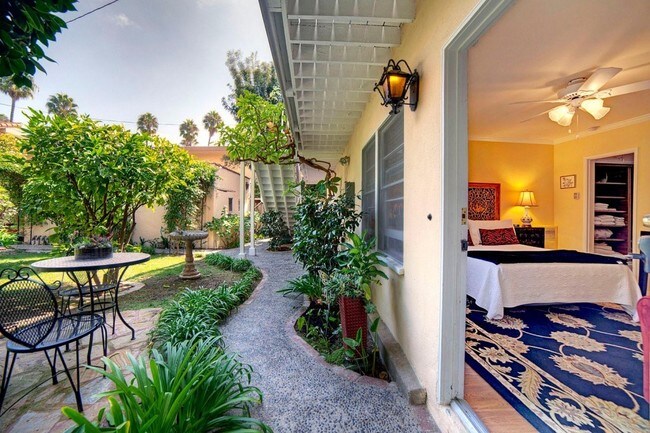 Fully FURNISHED Studio with Fabulous Garden-Includes all utilities, wifi, cable tv. Lower corner units in 4-unit building. (no stairs to get to this apartment.)Street Parking. Completely FURNISHED UPDATED Charming Studio with Eat-in full Kitchen-- At the back of a beautiful garden. ALL UNTILITIES INCLUDED, GAS, ELECTRIC, WIFI, CABLE TV. Great for Short or long Term stay. Located within walking distance of both the bus line and the METRO-LINK. New Stove, Refrigerator, HARDWOOD FLOORS. Bath has shower/tub. Located on 17th just 1/2 block from Montana Ave. 40" wide flat screen TV, cable, WIFI, utilities included. Laundry Facilities on site. We are steps away from Santa Monica's famed Montana Avenue where you will find restaurants, boutiques, spas, yoga studios, coffee houses, nail & beauty salons and bars.