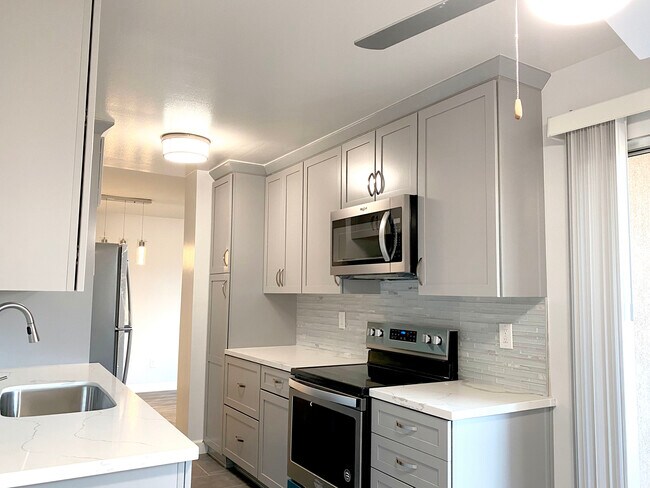 Discover this beautifully remodeled top-floor condo located in the serene community of Rossmoor, Seal Beach. This spacious 2-bedroom, 2-bathroom unit offers a perfect blend of comfort, convenience, and modern living. Just minutes away from the Shops at Rossmoor, top-rated schools, and easy access to the 405 and 605 freeways, you'll have everything you need at your fingertips. Prime Location: Walkable Convenience: Within minutes of walking to Sprouts, In N’ Out, Chick-Fil-A, Peet’s Coffee, Starbucks, Jersey Mike's, Target, and a variety of other dining and recreation options. Easy Commute: Quick access to the 405 and 605 freeways for a seamless commute. Unit Features: Temperature Control: Each bedroom and the living room are equipped with individual A/C and heating units for personalized comfort. Modern Appliances: Enjoy a brand new, fully equipped kitchen with stainless steel refrigerator, dishwasher, microwave, oven, and stove. Parking: Includes 1 covered parking space with additional street parking available. Note: Street sweeping occurs every other week. Balcony: Relax on your private balcony, perfect for enjoying the Southern California weather. Community Amenities: Gated Entry: Ensures privacy and security. Resort-Style Living: Take advantage of two pools, a fitness center, and a clubhouse. Proximity: A 1-minute walk to the Shops At Rossmoor and just 3-4 minutes to Rush Park. Pets allowed with $125/mo pet fee. Disclosure: In accordance with California law, we must inform you that a previous occupant passed away in this unit two years ago. If you have any questions or concerns, please feel free to discuss them with us.