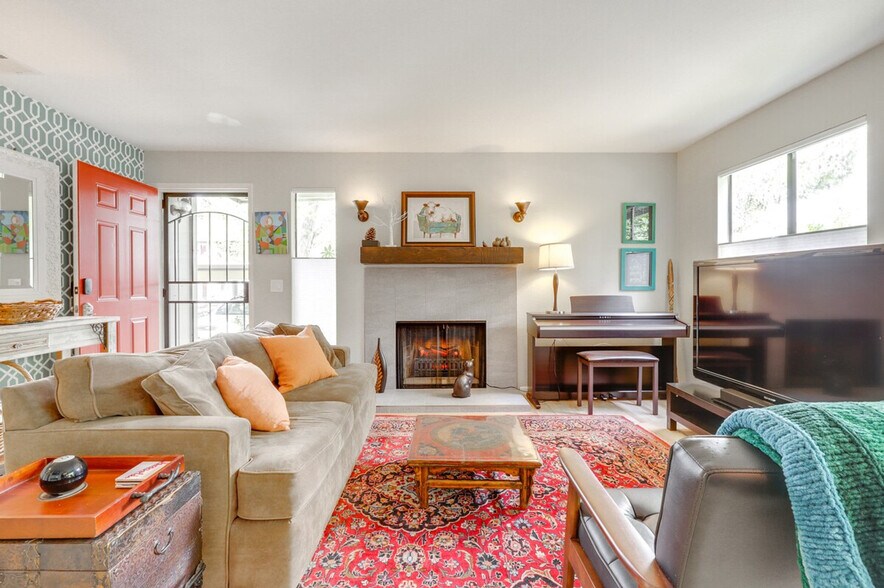 Feel at home in this peaceful 2-bedroom, 2-bath condo in Sonoma Meadows. This single-story unit requires four steps to enter. This condo boasts a well-stocked kitchen and a private laundry area for a seamless extended stay. The kitchen features a stove, double oven (with one convection oven), refrigerator, dishwasher, microwave, toaster, drip coffee maker, and an electric George Foreman grill, along with dishware, flatware, cooking basics, and a spice assortment. You'll also find trash bags and paper towels provided. Enjoy the 60" smart TV with Roku, Bose sound bar, electric fireplace, piano, dining table, and en-suite bathroom. Pets are welcome with a $75 fee. Reserved carport space is available for one vehicle, and there is a visitor surface lot for one additional vehicle. Experience the perfect blend of relaxation and convenience, located just five blocks from Sonoma Plaza. Quiet hours are observed from 9:00 PM to 7:00 AM; please keep outdoor conversations and the TV at a respectable volume during this time frame. Includes a desk and printer for remote work. [SI]