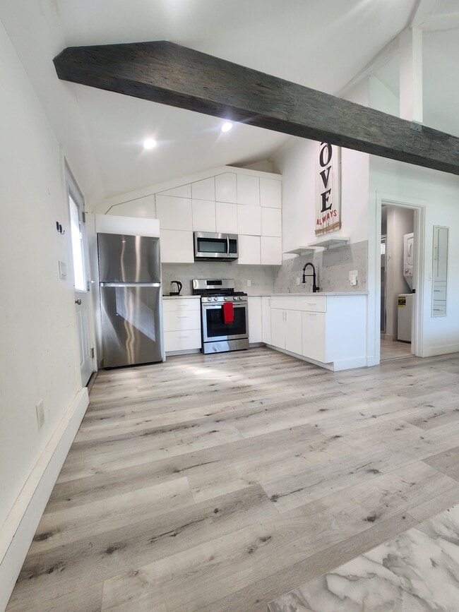 Modern upscale Adu with private entry and private patio high ceilings with recessed lights and vinyl flooring furnished unit with a Murphy bed queen size mattress to maximize the space all appliances are stainless steel full size stove oven with five gas burner range microwave and refrigerator . Smart TV HD located on a quiet street in Tarzana close to Orange Line Metro 5 minute drive to 101 freeway and 5 minute drive to Pierce College walking distance to shopping and dining Starbucks and Vons market.