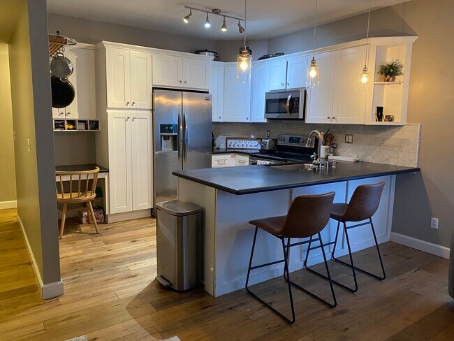 Available for rent is this condo unit in Thousand Oaks, just off TO Blvd by The Lakes/Civic Arts Plaza. Great location - close to the 101/23 freeways, restaurants, and shopping. This condo has been completely remodeled with new flooring, new cabinets in the kitchen, and quartz countertops. Marble and tile shower. Stainless steel appliances including stove and dishwasher. There are super high ceilings and tons of natural light. Central A/C and heat. Laundry in unit. Large outdoor patio for BBQ and relaxing, plus a storage closet. This is a downstairs unit. 2 parking spaces (one covered) plus tons of guest parking. One of the nicest condos you will find in Thousand Oaks! The complex has a pool and spa plus lots of parking, including an assigned covered space. Large park next door with new playground equipment. Pets considered with additional deposit. Expected to be available for move-in 10/8/24.