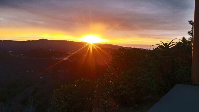 House in the woods on large gated property near Calabasas/Topanga Canyon. Cozy three bedroom two bath with large open living room, dining room and kitchen, access to pool/spa. Available partially or fully furnished. Granite countertops, steel appliances, custom cabinetry, maple hard wood floors. Amazing ocean, canyon, city light and snow-capped mountain views, with patios on three sides. Off-street parking, washer/dryer, gas stove, fireplace. Ideal location for musician, producer, voice artist. Includes workshop/storage shed and small storage/office/studio space. Citrus trees, and horses graze freely nearby. One year lease at $5,495/month plus utilities. 2-months security deposit and bkd check required. Please no pets except horse and livestock boarding available by separate arrangement. No cigarette smoking.
