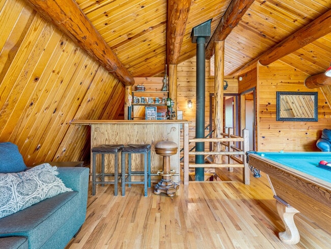 The advertised rate of $6,552/month is the lowest available price, based on a 1 month(s) stay with a move-in date of April 12, 2026. Rates vary depending on the duration of stay, season, and other parameters. For exact pricing and additional pricing components, please visit our website and enter your desired move-in and move-out dates. The rate is applicable when billed upfront; it can be higher if billed in multiple payments. Escape to this 3-story log cabin in Twain Harte, perfect for families and groups. Feel at home in this rustic forest escape right off the highway, offering parking for up to 8 cars. Please be aware that the interior stairs are steeper and narrower than modern building standards, requiring caution and may not be suitable for guests with mobility issues, balance concerns, or young children. Holding the handrail at all times and taking extra care, especially when carrying items, in low light, or after consuming alcohol, is strongly recommended. This cabin sleeps 13 and features 4 bedrooms, retro video games, board games, and a stocked kitchen. The main floor includes a full kitchen stocked with coffee and tea, a dining area, a cozy living room with a TV, a full bathroom, and a bedroom with a queen bed. Downstairs is perfect for families or groups, with two bedrooms—one with two full beds and a TV, the other a fun kids' room with two sets of bunk beds and retro video games. Upstairs, unwind in the game loft with a pool table and bar, or step out onto the private balcony off the king-size bedroom. Another full bathroom is also located on this floor. Enjoy the spacious deck with forest views, a ping pong table, a foosball table, and an outdoor dining table. You're just 10 minutes from Sonora and 20 minutes to Pinecrest Lake, close to everything but still tucked into the pines. During the winter season, when it snows, it may not be safe to drive down the driveway. If you don't feel comfortable, you can request that a snowplow be sent. This cabin features a beautiful original wood-burning stove from 1895 that is not available for guest use and must remain unlit during your stay. Any guest who uses the wood stove does so in direct violation of house rules and assumes all liability for injuries or property damage. [SI]
