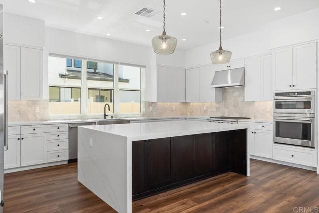 Brand New Construction at Stonemark Estates Available Now! Beautiful one story 5 bedrooms, 4.5 bath plus attached JADU (1bd/1ba guesthouse). Fenced backyard with built in barbecue and fire pit. Each primary home includes an approx. 500 sq. ft. attached JADU suite with a private entrance, kitchenette with quartz countertops, full-size under-counter fridge, gas washer/dryer, and a luxurious bathroom with a floor-to-ceiling tiled walk-in shower. LUXURIOUS INTERIORS - 10’ foot volume ceilings and 8-foot insulated fiberglass doors throughout. Vinyl plank flooring in main living areas with plush carpet in bedrooms, closets, and staircases. Recessed fire sprinklers for added safety. Elegant black contemporary door hardware and hinges. Designer roller shades for privacy in bedrooms and bathrooms. Remote-operated 5’ linear built-in fireplace with wood mantels. CHEF-CALIBER KITCHENS - Upgraded GE Café Series appliances, including a 48†built-in refrigerator. All-gas Wolf range and high-performance stainless steel ventilation hood. Stainless steel farmhouse-style sink with 3/4 HP garbage disposal. Quartz countertops with full tiled backsplash. Extra-large kitchen island with waterfall quartz countertops and built-in storage. Soft-close shaker cabinetry with black hardware and adjustable shelving. Walk-in pantry with ample storage. Designer pendant lighting and under-cabinet illumination. SPA-INSPIRED PRIMARY SUITE - Expansive primary closet with recessed lighting and custom shelving. Lavish primary bath features a stand-alone soaking tub, spacious designer walk-in shower, frameless shower doors with a seating bench, and his & hers sinks with quartz countertops. Full-length mirrors and built-in linen cabinets for additional storage. TECHNOLOGY & ENERGY EFFICIENCY - High-efficiency LED lighting throughout. Solar system for both the main home and ADU. Tankless water heaters with direct vent in both the main home and ADU. Prewired high-speed internet and data wiring for wall-mounted TVs in living rooms and primary bedrooms. Separate electrical and gas meters for the ADU. Garage prewired for electric vehicle charging. ELEVATED OUTDOOR LIVING- Expansive covered patios with recessed lighting and ceiling fans. Electrical outlets in the ceiling for decorative lighting. Spacious 2+ car garages with additional storage space. Experience unparalleled luxury and thoughtful design in every detail at Stonemark Estates. Contact a Pacifica Enterprises representative today for pricing and availability. Pet Rent $100/month per pet. MLS# NDP2511533