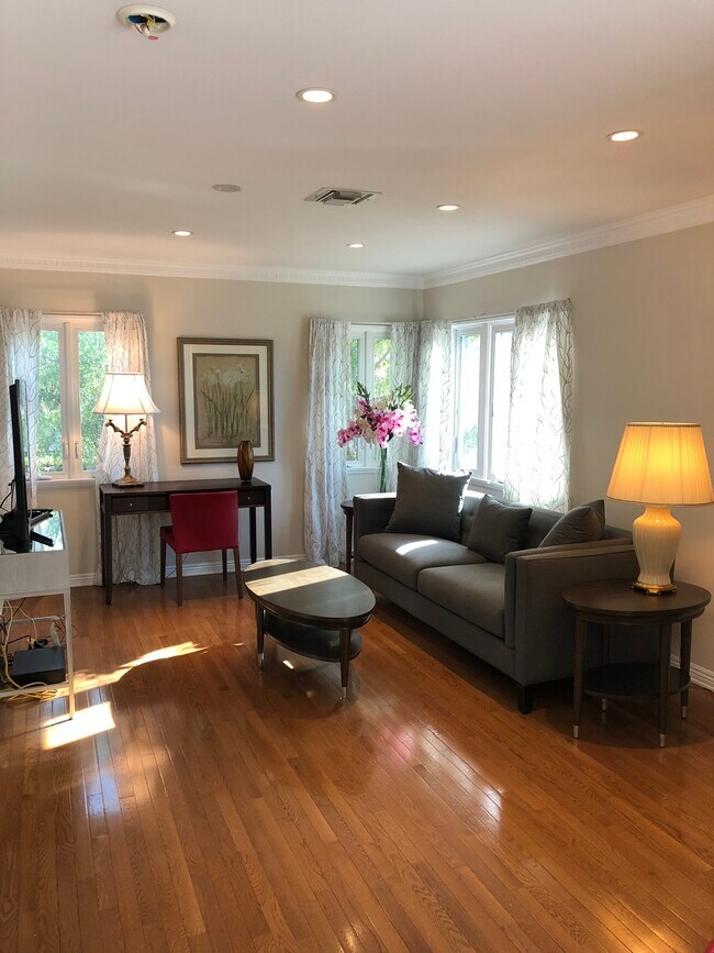 ONE BEDROOM APARTMENT , Completely Furnished and Remodeled, Facing Street, ON SECOND FLOOR OF A FOUR UNIT BUILDING, HEAT AND AIR CONDITIONING IN UNIT, FLAT SCREEN TELEVISION, WASHER/DRYER INSIDE APARTMENT, HARDWOOD FLOORING, LINENS AND KITCHEN SUPPLIES INCLUDED. OUTSIDE PARKING FOR ONE CAR ON PREMISES, IN A VERY QUIET NEIGHBORHOOD ONE BLOCK WALK FROM SANTA MONICA BLVD AND ABOUT 4 BLOCKS WEST OF CRESCENT HEIGHTS. MINIMUM 31 DAY RENTAL PERIOD. CLOSE TO THE GROVE, BEVERLY CENTER AND BEVERLY HILL