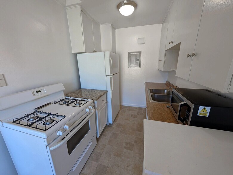 Unit Description: Great Upper Level 1 Bed and 1 Bath Unit in West Hollywood with Plenty of Natural Light and Hardwood Floors Throughout, except in the Kitchen and Bathroom. Kitchen has White Modern Cabinetry with Earthy Colored Countertops, Stainless Steel Double Basin Sink and Appliances Included: Refrigerator, Gas Stove and Microwave. Modern Light Fixture in Bedroom with Lots of Closet Space. Bathroom with a Bathtub with Shower Rod, Vanity with a Porcelain Sink and Medicine Cabinet. Plenty of storage space and a large bedroom. Shared Laundry Room Onsite. Pool Onsite. Small Apartment Complex in Prime Location near many Trendy Shops and Restaurants. 1 Parking Spot. Tenant Pays All Utilities - Including Water and Trash (Rubs). 1 Parking Spot Tenant Pays All Utilities IT490410 - IT49st1263nhayworth