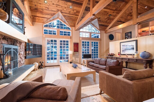 Located in Aspen’s West End neighborhood on the corner of W. Smuggler and N. Fourth Streets, this lovely 4-bedroom home is just a stroll away from the Benedict Music Tent and downtown Aspen’s world class shopping, dining, and outdoor recreation. Features include an open living room with vaulted ceilings, chef’s kitchen, dining area, Master Suite with fireplace, jetted spa tub, and steam shower, three en suite guest bedrooms, and an office. During the summer months, take advantage of air conditioning on the main floor and in the Master Bedroom. There is also a wonderful backyard deck to enjoy!