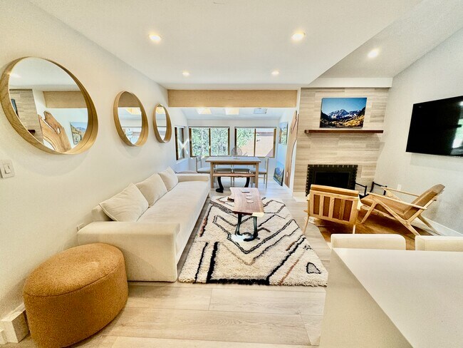 839 square feet two bedroom (second bedroom is loft/office) and one bathroom. brand new remodeled. steam shower, heated floors, skylights, sunroom, loft, wood burning fireplace, great light, quiet. west end of aspen - bus stop outside front door to all ski areas. parking space.