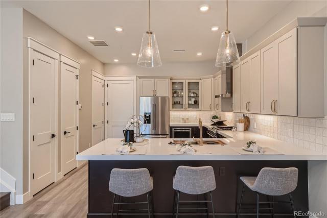 APS70607083 - These newly built townhomes on East Orchard Road, adjacent to Greenwood Village in Centennial, CO, are exquisitely designed with high-end finishes and an abundance of natural light that pours through the interiors. The 10-foot-high ceilings create an open-air feel that adds to the sense of sophistication and spaciousness. The kitchen features custom cabinetry, along with premium appliances and ample pantry space. The main floor has beautiful light fixtures and a multi-functional electric fireplace. Additionally, there are two spacious bedrooms at the end of the hallway, primary bedroom with a private park view, and an attached custom two-car garage below them. The location of these townhomes is unparalleled as it is just a few minutes away from downtown Denver and the Denver Tech Center. There are also many restaurants and amenities nearby, such as the Highline Canal, Aspen Academy, and Saint Mary's schools. Photos are from the model homes. Security deposit 1 month rent **can be rented with furniture, furnished monthly rent $4,800**