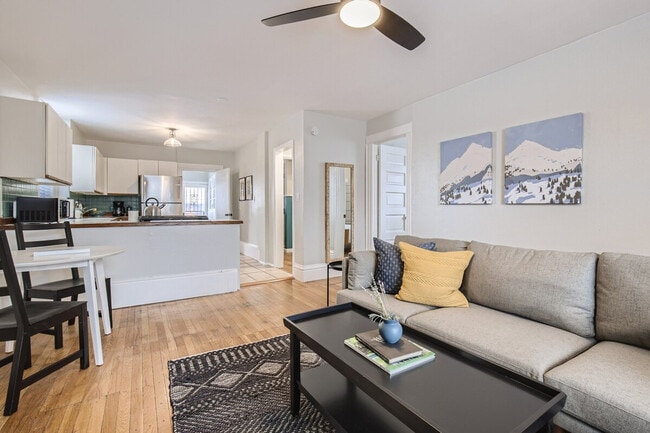 Welcome to this spacious 915 sqft two-bedroom apartment located on the main floor at 1240 N York St. With convenient entry from both the front of the house and the backyard, this home offers two excellent work-from-home spaces in the den and master bedroom, making it ideal for remote workers. Newly renovated and furnished by a designer in December 2022, this apartment features a comfy queen bed with linens and a fully stocked kitchen. Enjoy the communal back deck, grill, outdoor dining table, and fenced-in backyard, perfect for relaxation and entertaining. All utilities, parking, and internet are included, valued at $150+ per month. The apartment offers fast internet with 300mbps download and 10mbps upload speeds. A smart TV is available for use with your own streaming service, and free communal laundry is located in the basement. One dedicated parking space is provided per apartment, and street parking is free and available on the block. Pet rent is $90 per dog per month, with a strict no cats policy. Situated in a prime location, this apartment is just three blocks from Cheesman Park and the Botanic Gardens, and four blocks from City Park. A short five-minute drive will take you to Sprouts Farmers Market, Ideal Market, Whole Foods, and King Soopers. The Cherry Creek Shopping District is also just five minutes away. Downtown Denver, RiNo, and LoHi are a 12-minute drive, while Red Rocks is 30 minutes away and ski resorts are 1 hour and 30 minutes away. Nearby hospitals include St Joseph, Presbyterian St Luke’s, and Rose, which are seven minutes away, and UC Health University of CO and Children’s Hospital CO, 20 minutes away. The property is non-smoking and non-vaping, with violation resulting in damage fees. Check-out time is 10 AM, with a $50 fee for every additional 30 minutes past check-out. Noise disturbances are monitored, with warnings given for any reported issues, and additional disturbances may result in eviction without refund. Guests are responsible for removing all personal property at check-out, with a minimum $50 fee for returning items left behind. Maintenance issues are addressed promptly, though no refunds or rent reductions are provided for mechanical failures or interruptions of utilities. The apartment includes two great work-from-home spaces in the den and master bedroom, equipped with fast internet to support your remote work needs. [SI]