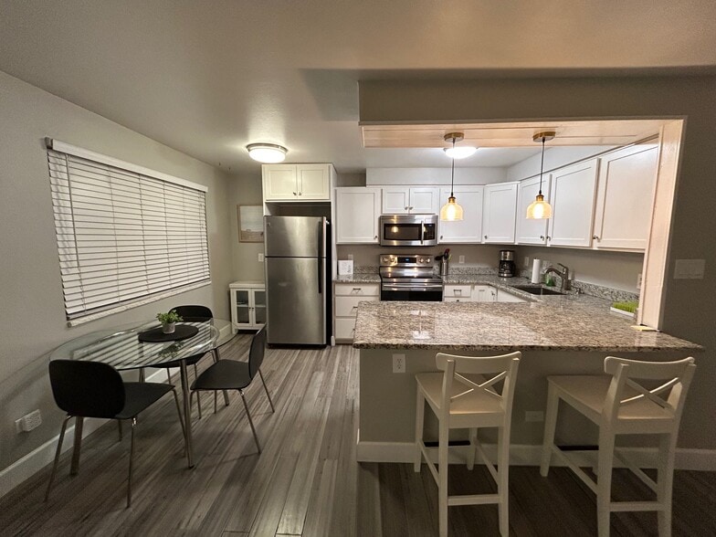 Fully furnished end unit in secured building in the heart of Central Denver*Light & bright with double pane windows & window coverings*Newly remodeled kitchen with tons of cabinets, granite counter top, all new stainless steel appliances*Dining Nook With Seating for 4*Large, open living room with plenty of seating & natural light*Large bedroom with queen sized bed, two nightstands, dresser and large closet*Newly remodeled full bath with jacuzzi tub*New hardwoods*Extra storage closets*Unit comes with exclusive ski locker, basement storage unit, reserved parking space*Laundry on each floor*Building amenities include fitness room, outdoor pool, bike rack, BBQ area with patio furniture, grills*All utilities are included, including heat, cooling, electric, water, sewer, high speed internet, cable TV, trash*Great location...walk to bars, restaurants, shopping, Tattered Cover bookstore, Central Denver Rec Center*Close to public transportation*Near Congress Park and City Park*Close to Cherry Creek & Downtown. Close to Multiple Hospitals.