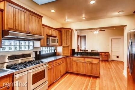 NO PETS and NO MORE THAN 2 unrelated adults . Beautiful, historic 3 story Denver Square house with beautiful wood floors, detached two car garage, three fireplaces, central air and a huge eat in kitchen with stainless appliances and granite counters. The first floor includes the living room with pocket doors and fireplace, formal dining room, powder room and the original servant's stairs off the kitchen. The second floor has two large bedrooms with a remodeled bath and a large front room that can be used as a bedroom, nursery, living room, office or bedroom. The third floor has a new bathroom and two additional bedrooms. There is 3000SF of finished living space plus a large, unfinished basement with the washer and dryer and tons of storage space. This is in a great location just a half block from Cheesman Park in Capital Hill close to downtown, Cherry Creek, the Zoo, museums and The Botanic Gardens. There is a private fenced yard with sprinkler system and stone patio.