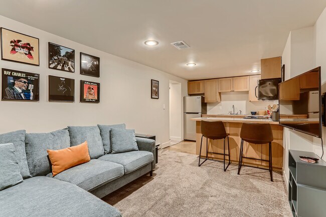 EVERYTHING INCLUDED. This one-bedroom, basement apartment with a private entrance is perfectly situated in the fabulous Congress Park neighborhood of Denver, just a couple of blocks from City Park, the Denver Zoo, the Museum of Science and some of the best restaurants in town. The apartment is fully furnished and outfitted with everything you need for your stay, including washer and dryer, bedding, towels, tableware and cookware. The rental rates are inclusive of internet, electricity, water, trash, recycling, composting, and even 2x per month professional house cleaning. The TV is ready for your Hulu, Prime, or Netflix accounts and the Sonos music player is ready for your playlist, Pandora, or Spotify accounts. When you open the door, you're home!