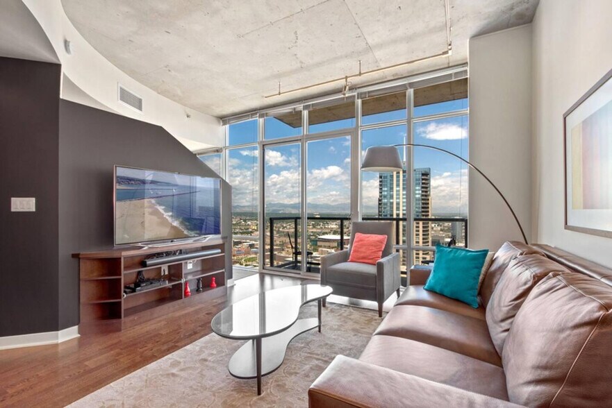 This 1-bedroom, 1-bath condo offers a comfortable living experience with its balcony, den with office space, and high-speed Wi-Fi. Located on the upper floors of one of the tallest, LEED-certified residential buildings in the western United States, it provides both luxury and convenience with secure garage parking and a 24-hour concierge. The apartment features a gourmet kitchen with granite countertops, a breakfast bar, and sleek stainless steel appliances. Residents can enjoy a wide range of amenities including a social club, state-of-the-art fitness center, media room, business center, and a pool-side club room/bar. The outdoor terrace boasts grilling areas, a fire pit, outdoor pools, and hot tubs. Residents of the 34-42 floor units have exclusive access to the private 42nd SkyClub Lounge, which features billiards and gaming tables, personal wine lockers, an entertaining kitchen, lounge seating, multimedia, and an outdoor terrace. Situated directly across the street from the Denver Convention Center and the Denver Center for the Performing Arts, this home is also just a few blocks from Larimer Square, Lower Downtown (LoDo), the Pepsi Center, Cherry Creek Bike Path, and the 16th Street Mall. With 1st Floor Retail offering beauty services, sandwich shops, bistros, and a cocktail lounge, everything you need is just steps away. Residents should be aware that initial supplies provided include a limited amount of toiletries and cleaning products, as restocking these items is not included. This is an industry-standard practice, and additional supplies will need to be purchased by the resident. The den is designed as a productive workspace, complete with high-speed Wi-Fi and comfortable seating, making it ideal for those who work from home. [SI]