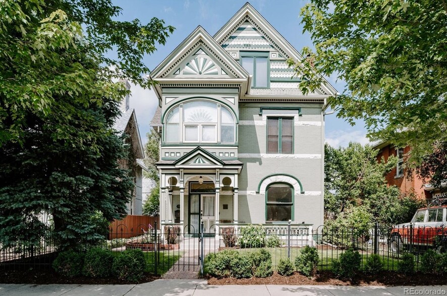 Located in the heart of Baker, this immaculate Victorian presents a unique and undeniable opportunity to live in central Denver, with both ample space and amenity. This property has street-level access and boasts over 2800 sqft above grade, over 3 floors. This space is inclusive of four bedrooms, three bathrooms, two living spaces (one on the main floor complete with a wet-bar and an additional family/living room on the second floor), and an open-concept dining room and kitchen. Delight in the pristine and periodic exterior details which are carried through the interior. Exposed brick, ornate transom windows, an original fireplace and 10ft ceilings are a few of the many details that make this home spectacular. Take in the awe-inspiring view of the Rocky Mountains from the third-floor deck; and glance to the North where you are greeted by the Denver skyline. Unobstructed, this is a view to see for yourself! Professional landscaping, a private fenced yard shared amongst the building, and a reserved parking space in the detached garage round out this property. This is an extraordinary opportunity for the size, condition and location and offers superior livability as compared to many single-family homes in the neighborhood....this home is not to be missed!